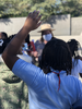A student in the foreground raises their hand in response to a presentation given by a Park Ranger who is blurred in the background.
