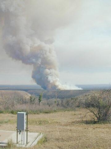 Heavy white and dark smoke in distance views of the Long Mesa Fire at Mesa Verde National Park, July-August 2002