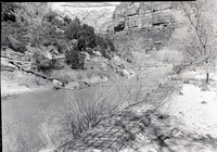 Trail bridge between main campground and scout area, Grotto Campground. ; ZION Museum and Archives Image 003_06B003 ; ZION 10240