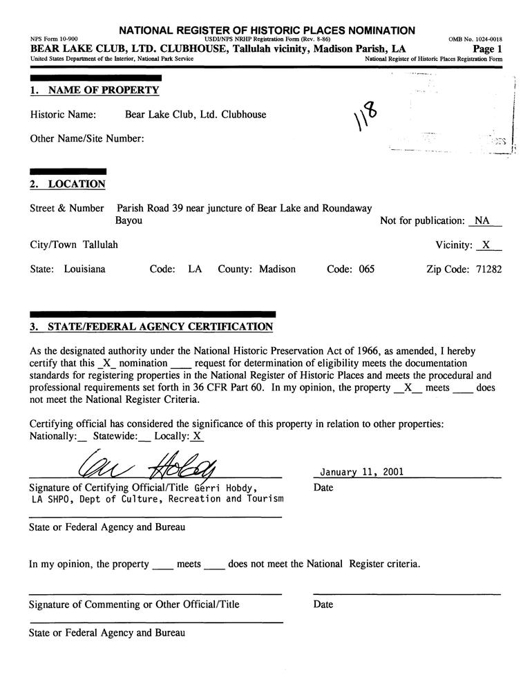 Tallulah ; Parish Rd. 39 near jct. with Bear Lake and Roundaway Bayou
