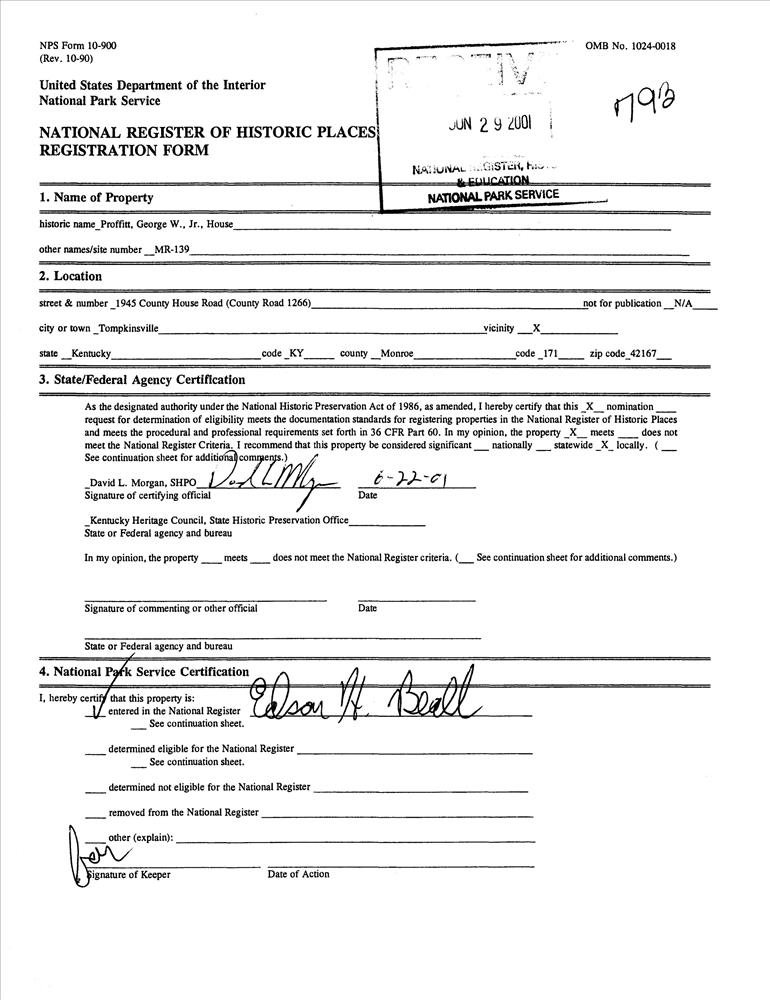 Proffitt, George W., Jr., House