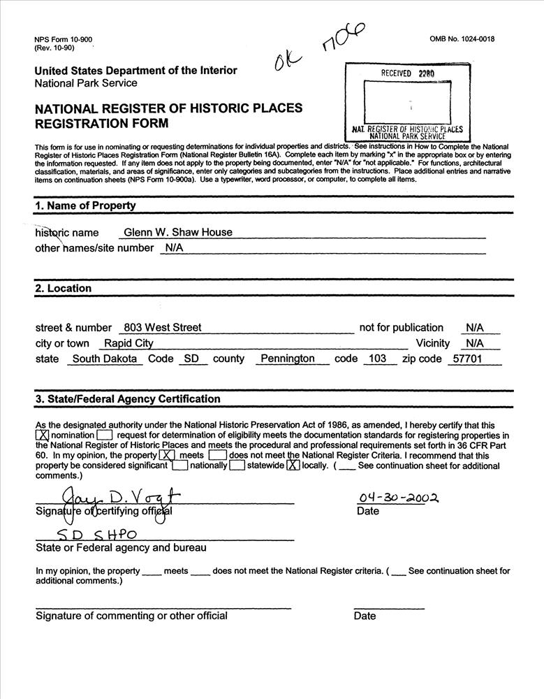 Rapid City ; 803 West St.