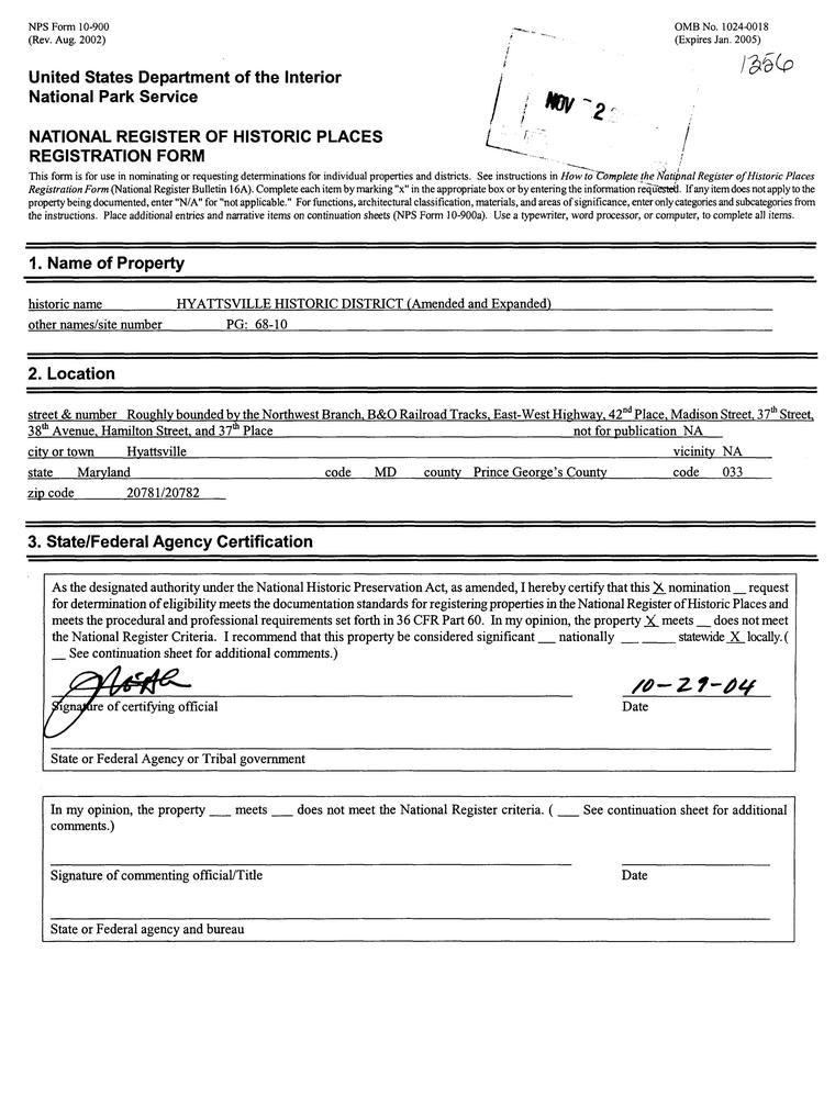 Hyattsville ; Roughly bounded by B&O RR Tracks, Ewast-West Hwy,42nd Pl.,Madison,37th,38th Ave, Hamilton, and 37th Pl.