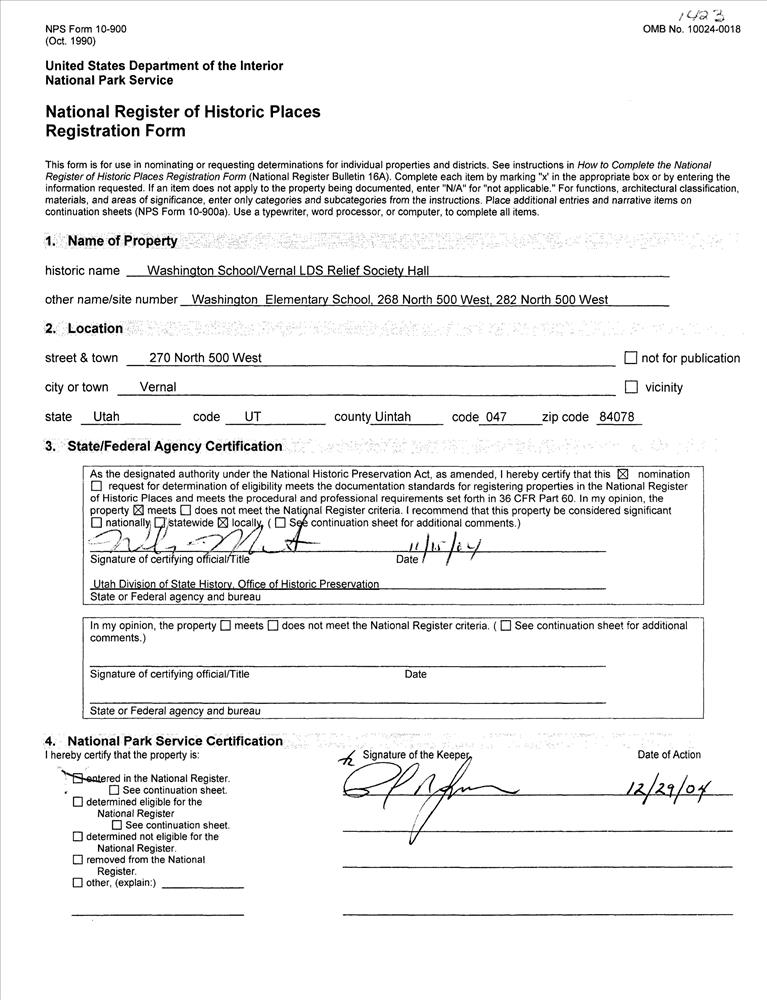 Washington School--Vernal LDS Relief Society Hall