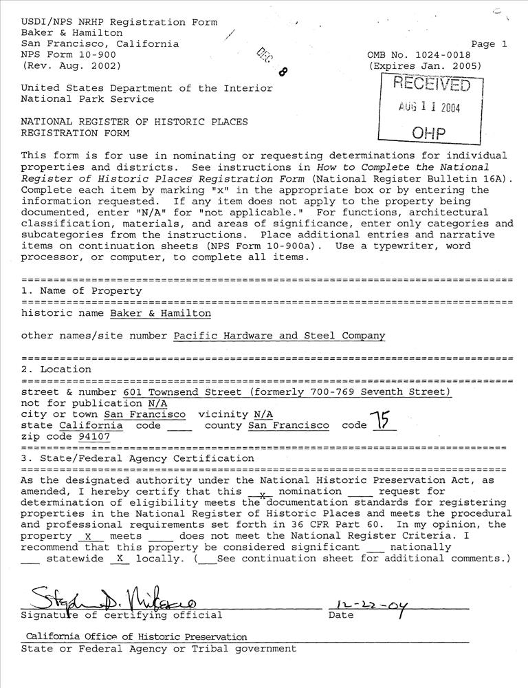 San Francisco ; 601 Townsend St.
