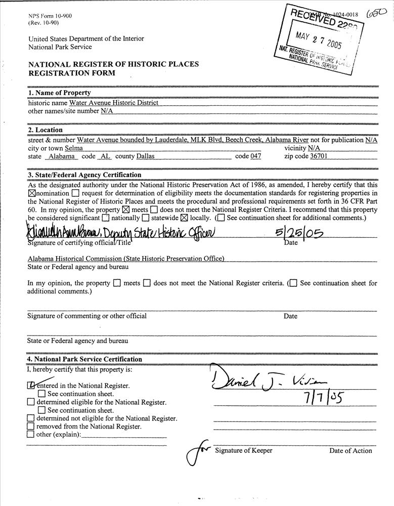 Selma ; Water Ave. bounded by Lauderdale, MLK Blvd., Beech Creek, Alabama R,
