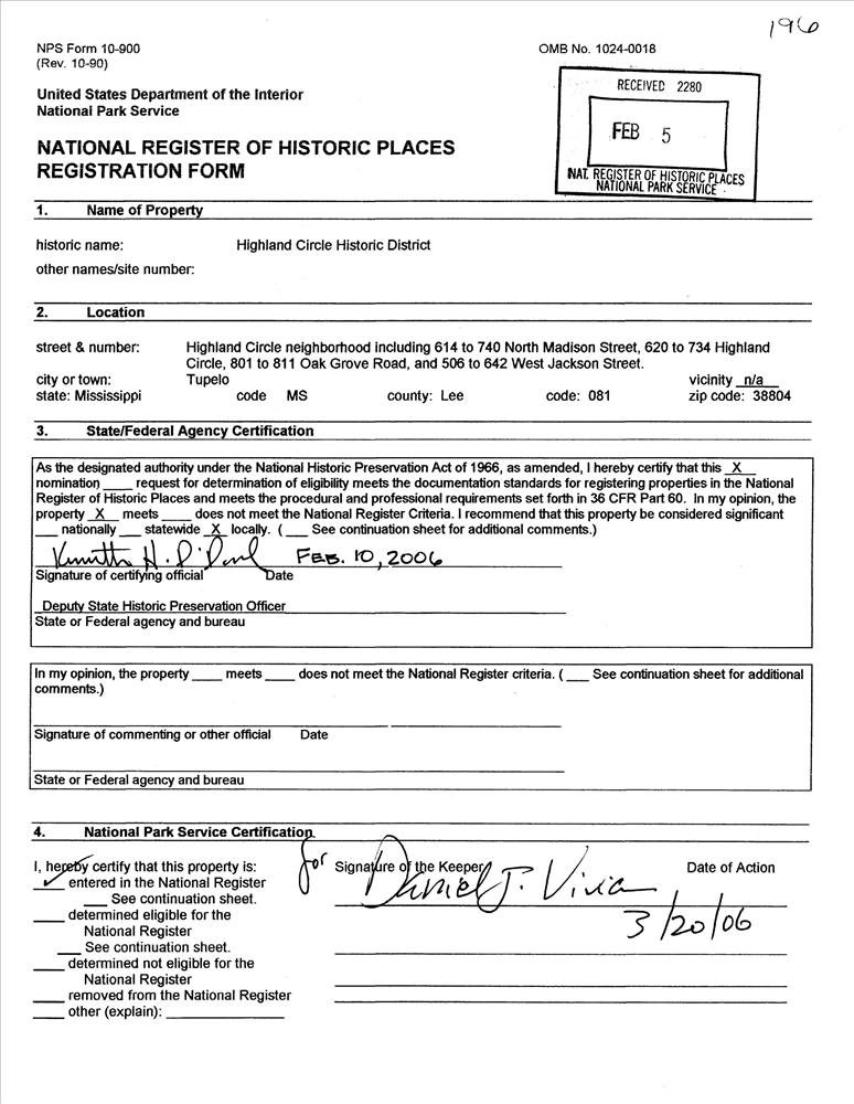 Tupelo ; Highland Circle neighborhood inc. parts of N. Madison St., Highland Circle, Oak Grove Rd. and W. Jackson St.