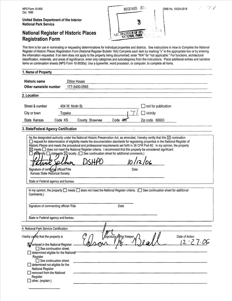 Topeka ; 404 W. Ninth St.