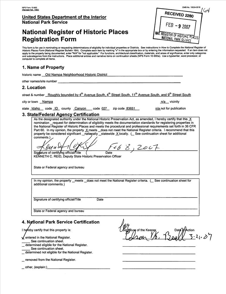 Nampa Neighborhood Historic District, Old