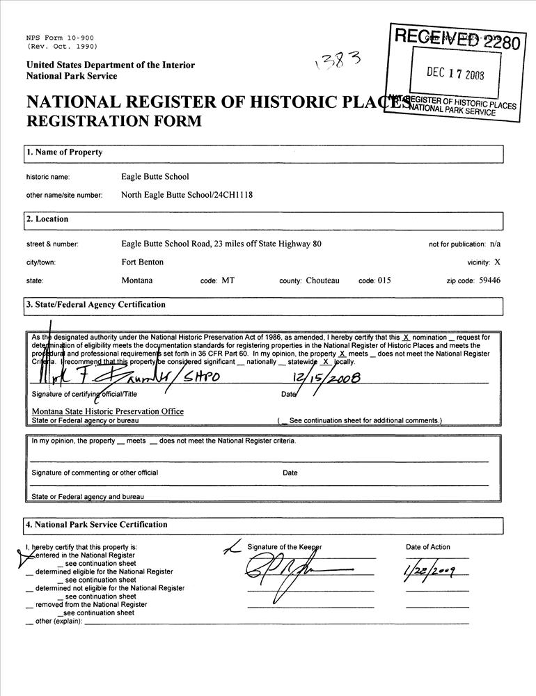 Fort Benton ; Eagle Butte School Rd., 23 mi. off MT 80
