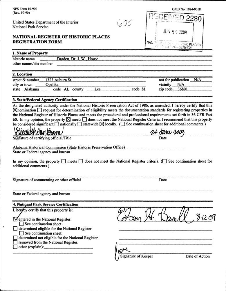 Darden, Dr. J.W., House