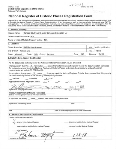Kansas City Power and Light Company Substation "A"