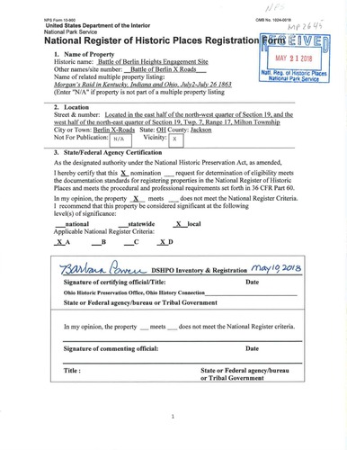 Berlin Crossroads ; Located in the east half of the north-west quarter of Section 19, and the west half of the north-east quarter of Section 19, Township 7, Range 17, Milton Township