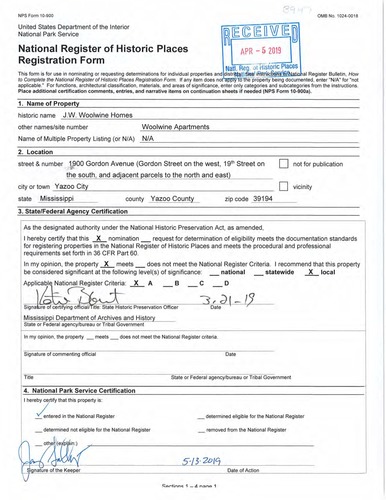 Yazoo City ; 1900 Gordon Avenue, 19th Street, and adjacent parcels on the north and east