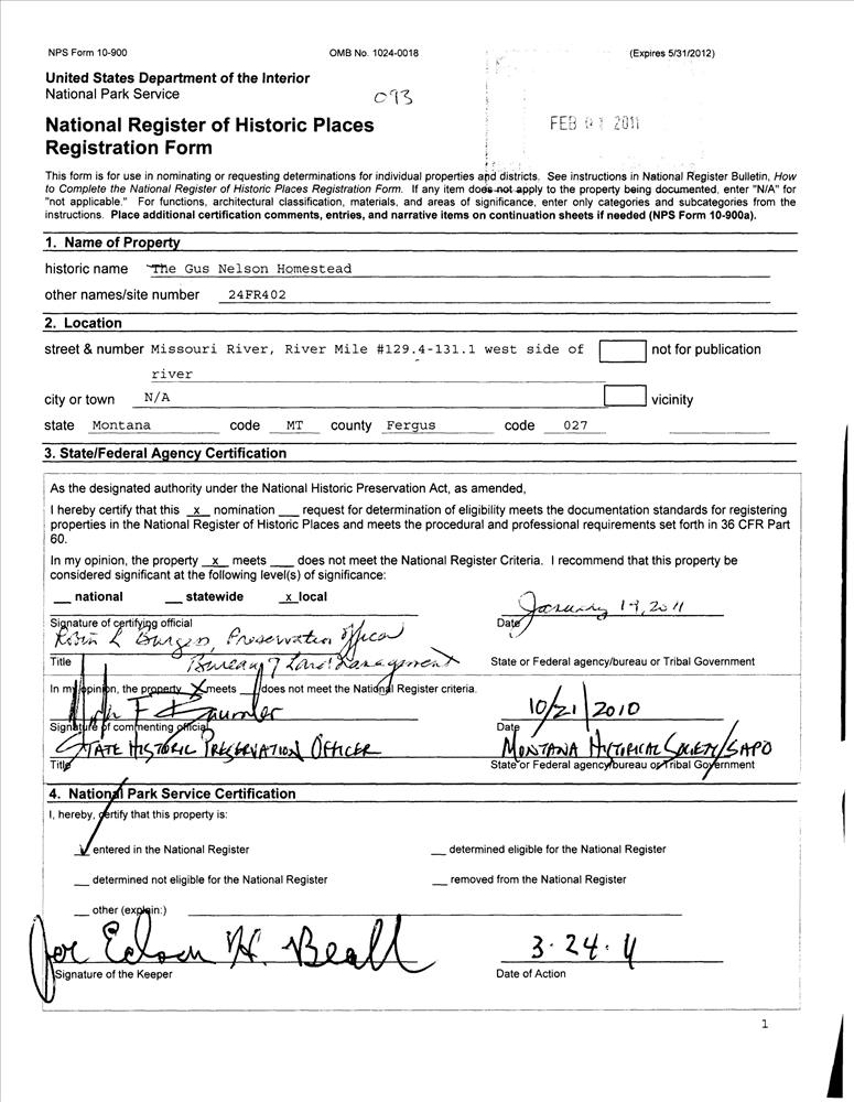 Nelson, Gus, Homestead