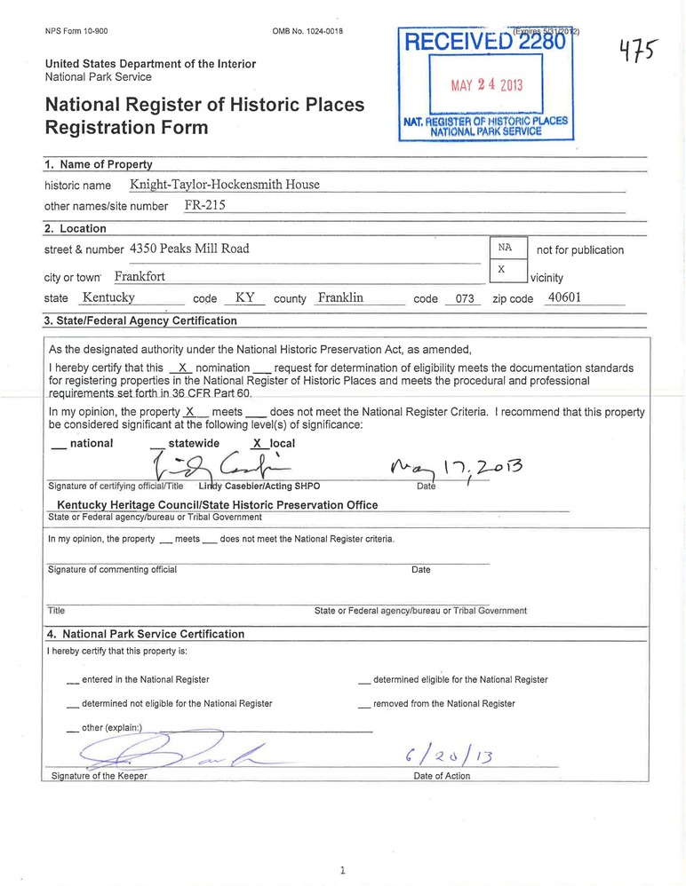 Frankfort ; 4350 Peaks Mill Rd.