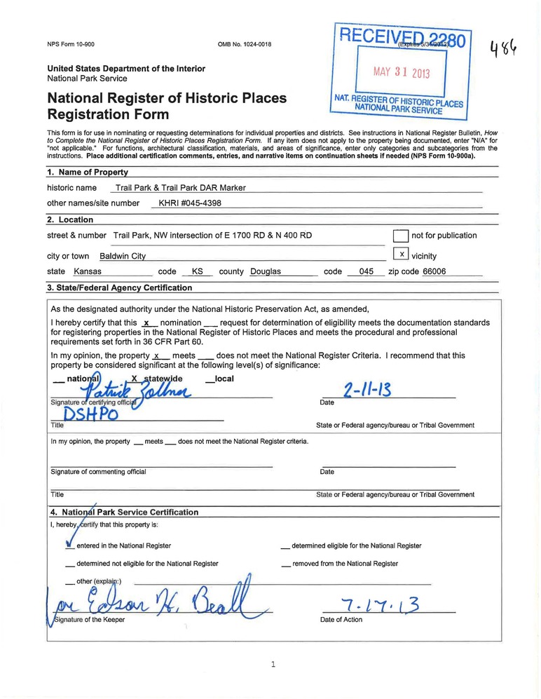Trail Park and Trail Park DAR Marker