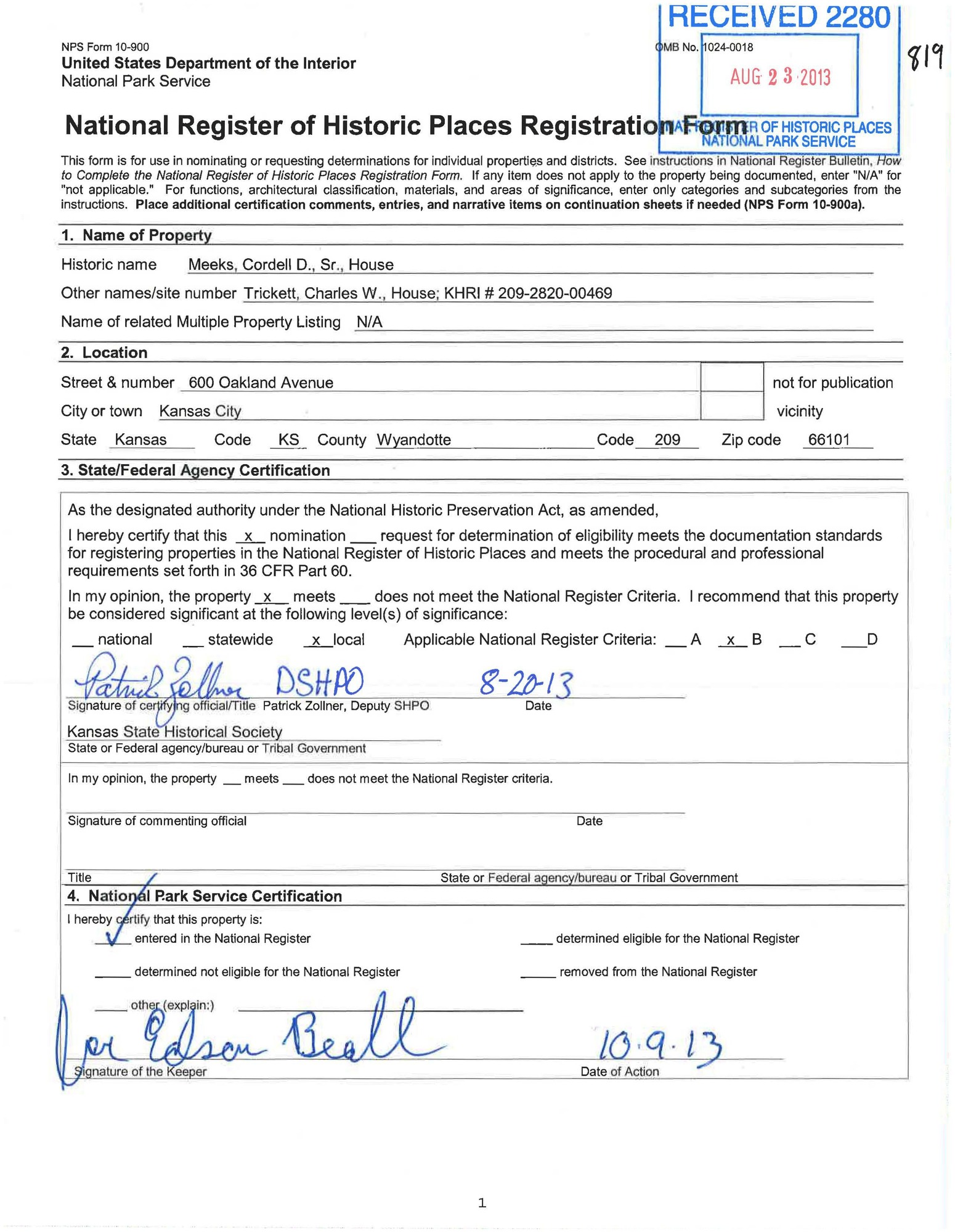 Meeks, Cordell D. Sr., House