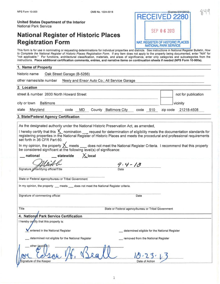 Baltimore (Independent City) ; 2600 N. Howard St.