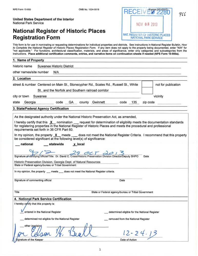 Suwanee ; Main, Russell & White Sts., Stonecypher & Scales Rds., N & S Railroad