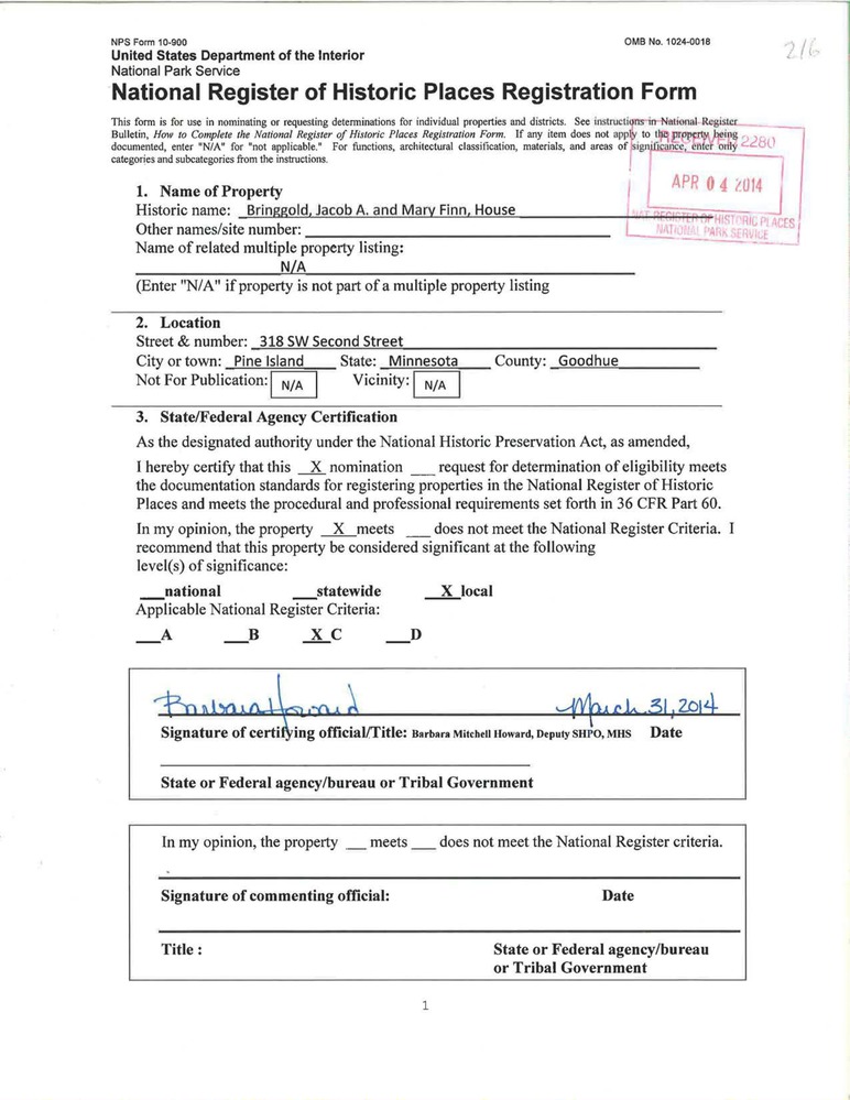 Bringgold, Jacob A. and Mary Finn House