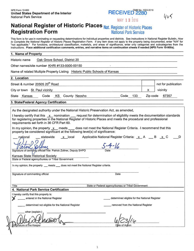Oak Grove School, District 20