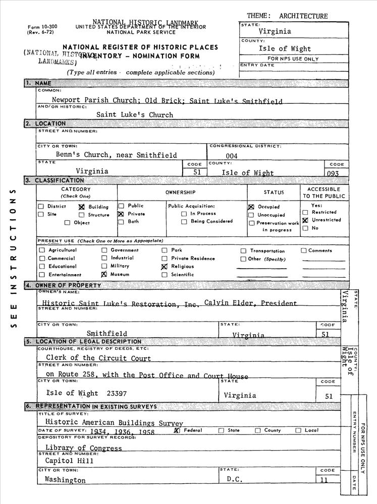 Smithfield ; 4 mi. S of Smithfield on VA 10