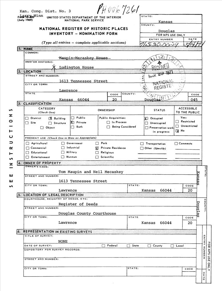 Lawrence ; 1613 Tennessee St.