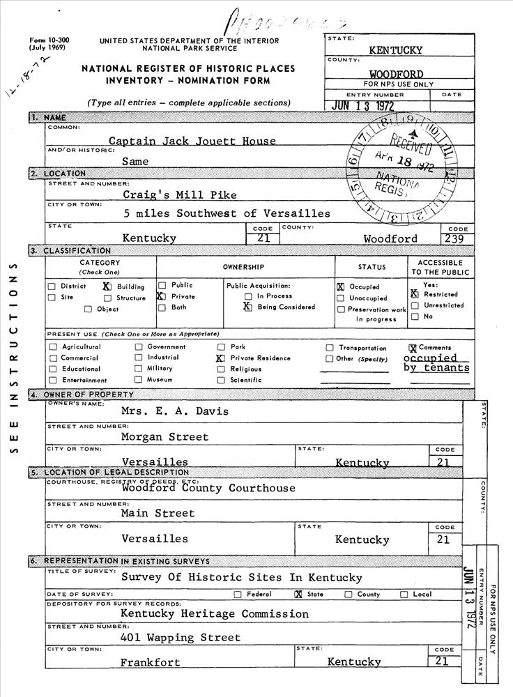 Versailles ; 5 mi. SW of Versailles off KY 1964
