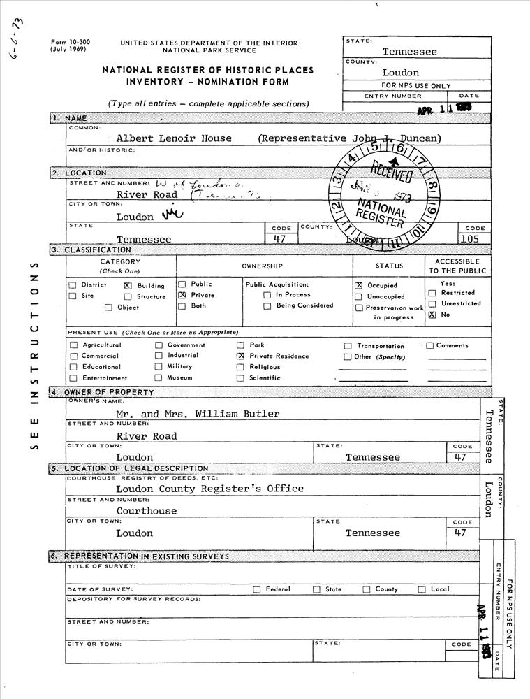 Loudon ; W of Loudon on River Rd. (TN 72)