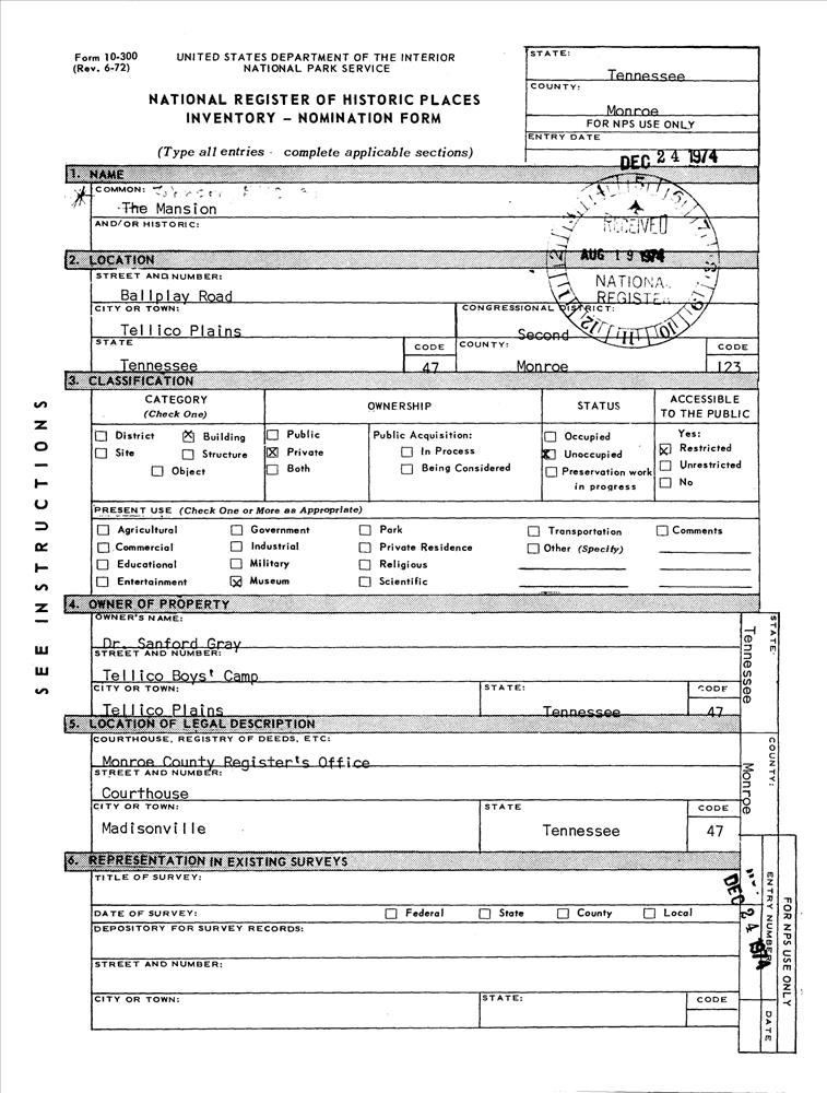 Tellico Plains ; Ballplay Rd.