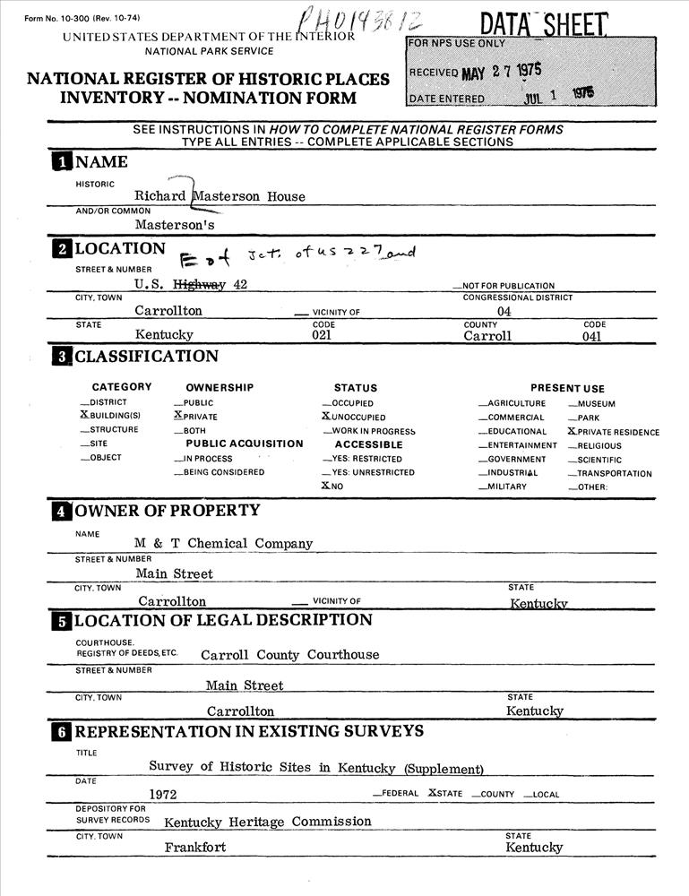 Carrollton ; E of jct. of U.S. 227 and U.S. 42