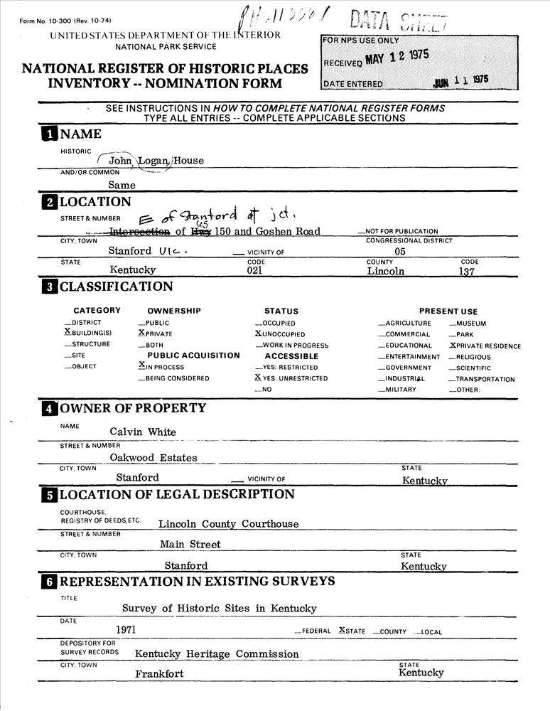 Stanford ; E of Stanford at jct. of U.S. 150 and Goshen Rd. (KY 642)