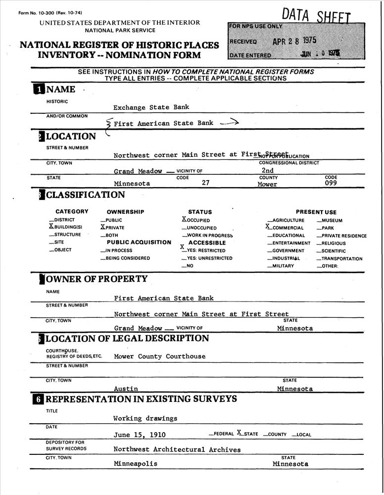 Grand Meadow ; NW corner of Main and 1st Sts.