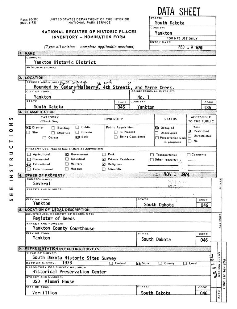 Yankton ; Bounded by Marne Creek and 4th St., and includes both sides of Cedar