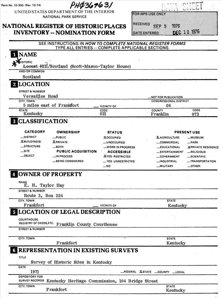 Frankfort ; 5 mi. E of Frankfort on Versailles Rd.