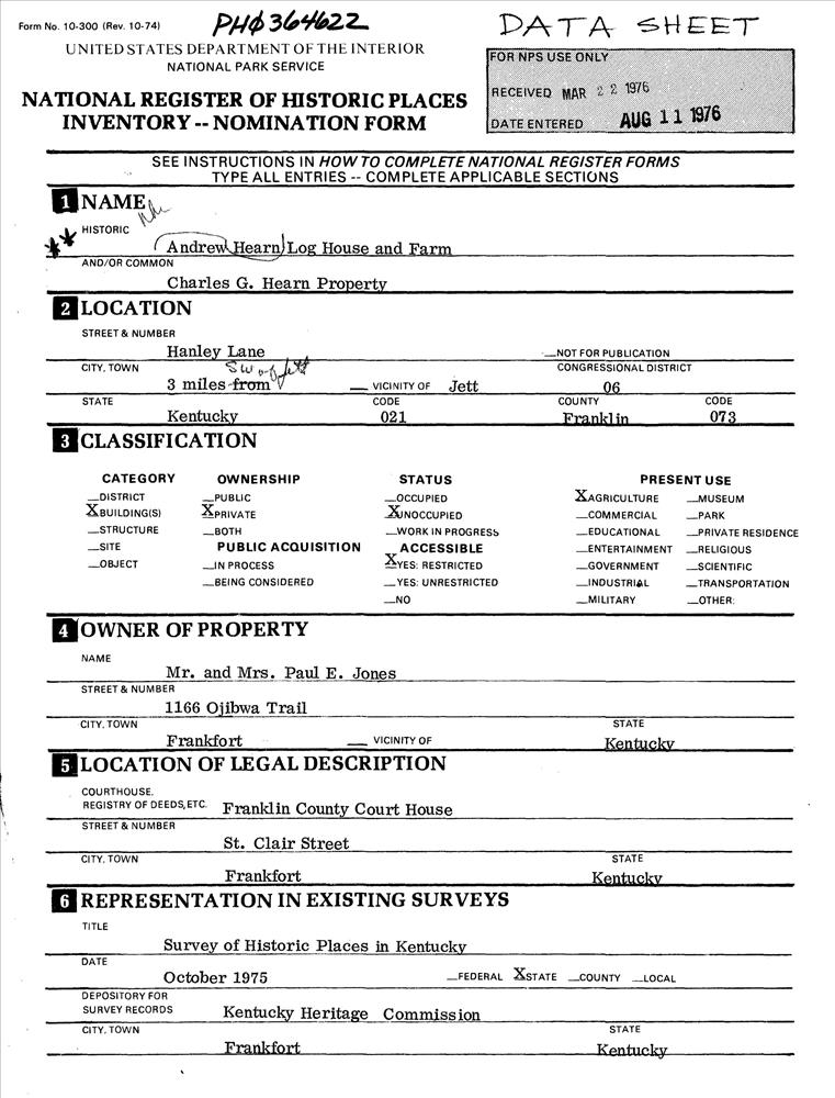 Hearn, Andrew, Log House and Farm