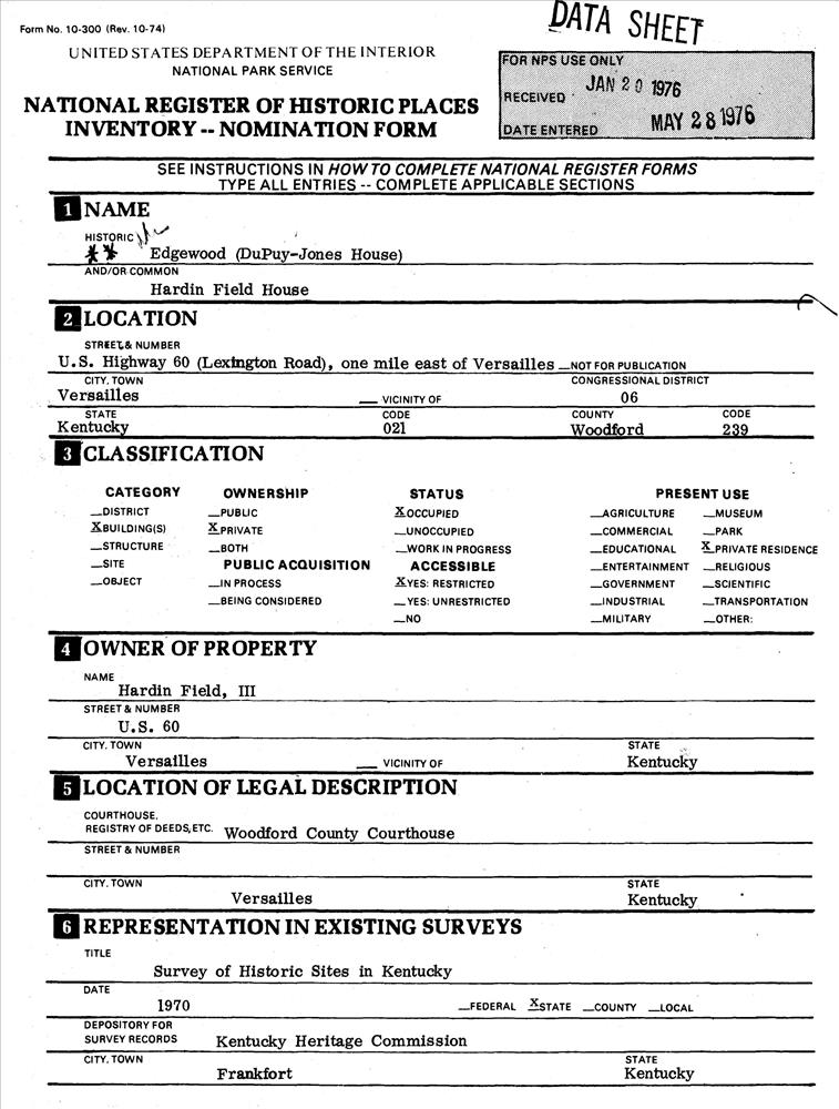 Versailles ; 1 mi. E of Versailles on U.S. 60
