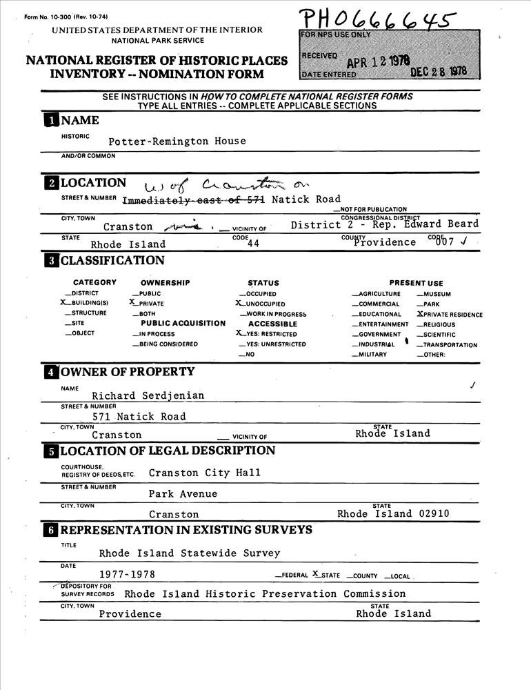 Cranston ; 571 Natick Rd.