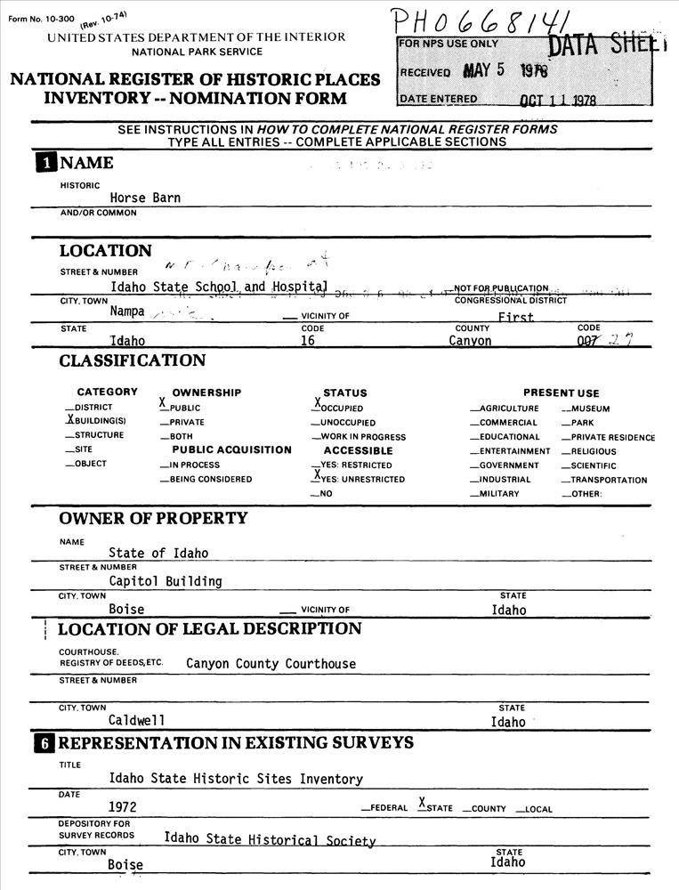 Nampa ; NE of Nampa at Idaho State School and Hospital
