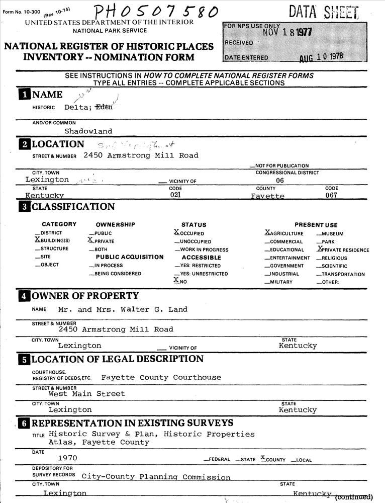 Lexington ; S of Lexington at 2450 Armstrong Mill Rd.