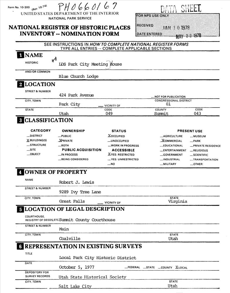 Park City ; 424 Park Ave.
