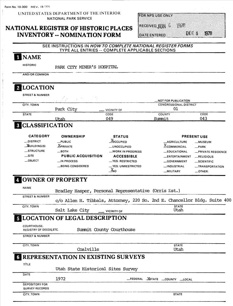 Park City Miner's Hospital