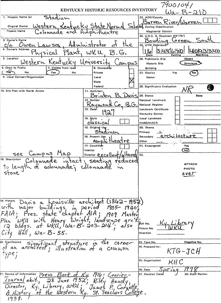 Warren County MRA;Davis, Brinton B., Buildings on the Western Kentucky University campus TR