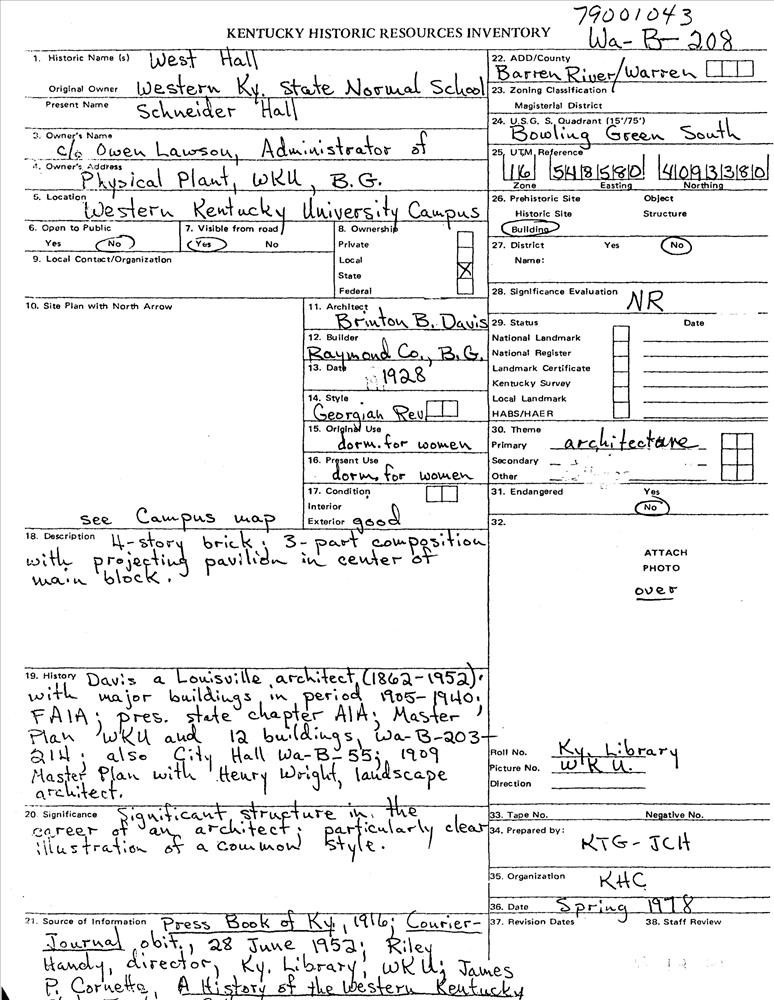 Warren County MRA;Davis, Brinton B., Buildings on the Western Kentucky University campus TR