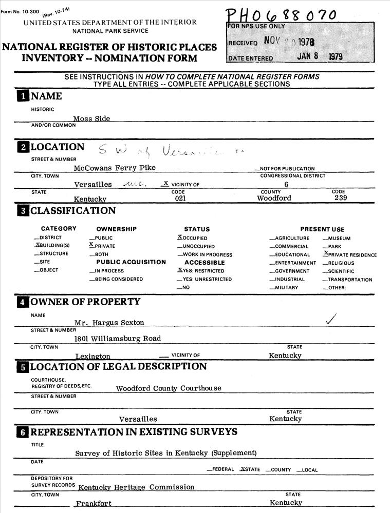 Versailles ; SW of Versailles on McCowans Ferry Pike