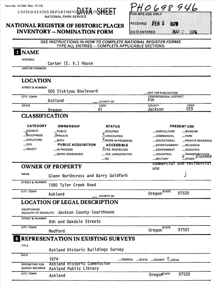 Carter, E. V., House