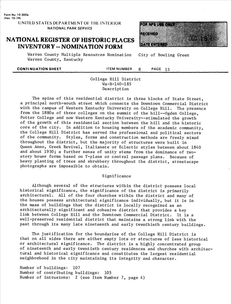 Bowling Green ; Roughly bounded by College and Chestnut Sts., 11th and 15th Aves.