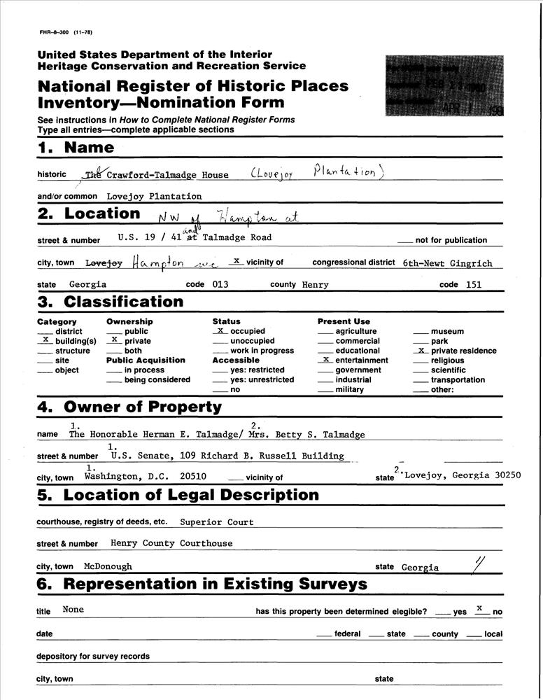 Hampton ; NW of Hampton at U.S. 19/41 and Talmadge Rd.