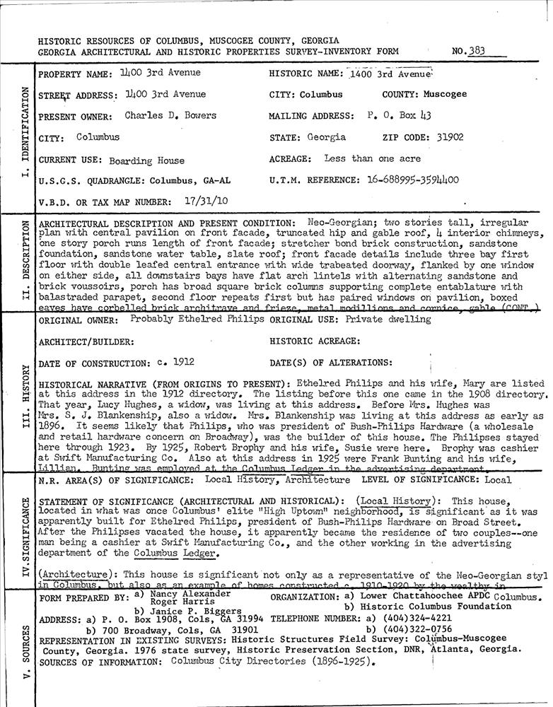 Columbus ; 1400 Third Ave.